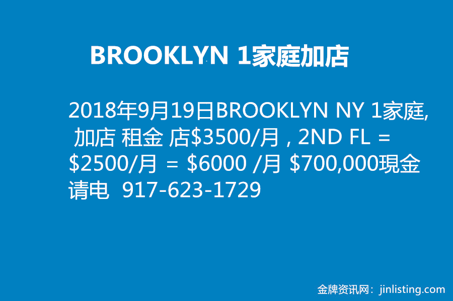 5612 CHURCH AVENUE, BROOKLYN NY 1家庭, 加店 租金 店$3500/月 , 2ND FL = $2500/月 = $6000 /月 $700,000現金 请电 917-623-1729