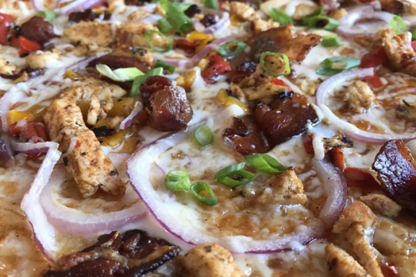 有浓浓的加州混搭风格。附上的面包好吃,有点Q,嚼起来很有口感,沾上橄榄油让人停不了口。点的蕃茄汤有义式加墨西哥式的风味,而California Club比萨深得我心,很传统的窑烤薄饼皮,在熏鸡肉比萨之上又洒了满满的生芝麻叶和酪梨,吃起来有田园风味,感受得到新鲜和美味。