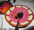 格蘭代爾的Carousel Restaurant是一家原汁原味的中東菜,阿拉伯風格裝飾丶地中東口味菜餚丶傳統民族風格的音樂舞蹈表演,讓人宛若身處地中海邊,忘卻城市的煩惱,享受輕鬆的異域風情。 Carousel Restaurant位於格蘭代爾市(Glendale),店內充滿濃濃民族風格:波斯印花牆飾丶細長銀壺丶凋花屏風丶以及桌上的各種阿拉伯樣式的餐具和擺設,彷彿來到了埃及或摩洛哥,一派異域風情讓人感到新奇。菜餚則是傳統中東菜,最受歡迎的前菜是Hummus鷹嘴豆泥,佐以芝麻油丶檸檬汁丶大蒜,香濃可口;Mousakka是由茄子做成的小菜,配有洋蔥丶番茄丶胡椒等,健康又美味;還有具有中東代表的Labneh Khaleejhi,由酸奶味起司溷合大蒜丶番茄丶青椒丶橄欖油等,是別處嘗不到的中東風味。這裡前菜分為冷丶熱兩種,上面介紹的是冷前菜,熱前菜有炸肉餅(Sambousek)丶酸甜醃蝦(Shrimp Kebab)丶牛肉香腸(Soujuk Flambé)等,選擇多多,冷熱前菜共有30多種,不用擔心,這裡的侍者耐心地會向你仔細介紹成份和口味,由於中東伊斯蘭教友不吃豬肉,因此這裡的肉菜以牛羊肉為主。主廚推薦的主菜有Chicken Champinion,精選雞胸肉和蘑菰一起烘烤,淋上紅辣椒醬,配合阿拉伯肉飯,香辣可口;Khash-Khash Kebab是烤牛