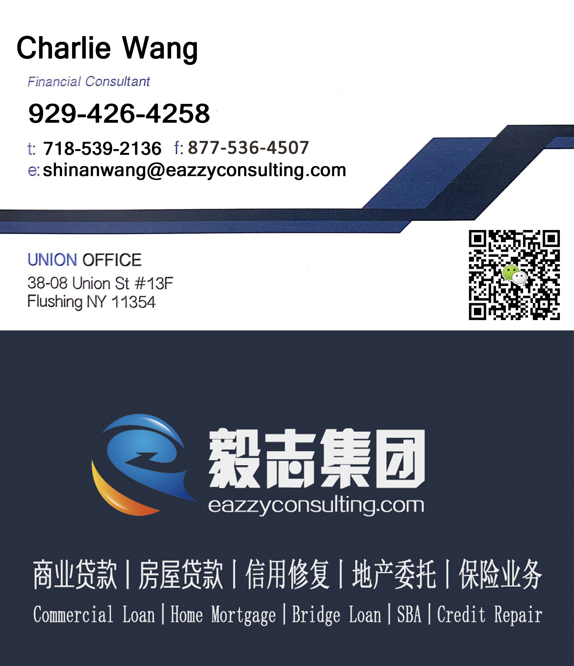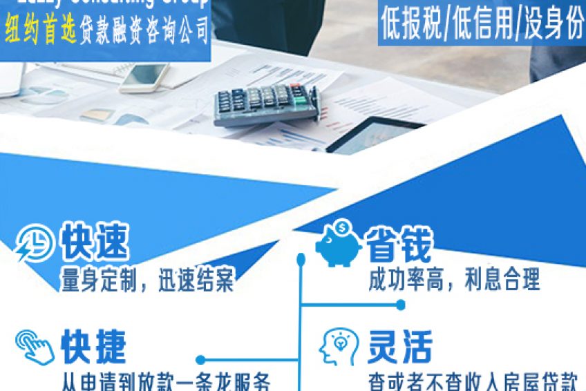 【毅志集团】纽约首选 免查收入/没身份/低信用 贷款公司 (业务覆盖全美 50 州)–首付最低20%/最高可贷到85% 毅志集团,纽约首选的融资及贷款咨询公司。公司由多名拥有十年以上银行贷款从业经历和金融行业工作经验的资深人士创立。毅志集团常年致力于为客户提供最专业优质的贷款融资咨询服务,以最优的贷款解决方案实现客户全面的资金需求。毅志集团与全美上百家银行,500多家投资机构拥有良好的合作关系,业务覆盖全美50个州。 –房屋贷款– 可做查/不查收入贷款,首付最低20% 无身份/低报税/信用低 皆可帮到您 拿升值后的房屋来重新贷款,轻松实现新的投资 在房产已有一个贷款的前提下,再多做一个贷款用于更多的投资,毅志集团可为您贷到房屋总价值的85% + Condo、co-op、1至多家庭、商住两用 + 抵押贷款/重新贷款 + 净值抵押贷款 + 房屋信用透支 + 房屋利率调整 + 个人小额贷款/信用修复 –商务服务– + SBA贷款 + 商业信用透支 + 无抵押商业贷款 + 企业运营资金 + 建筑贷款 + 设备贷款 + 进出口贸易贷款 + MCA/ACH贷款 一对一免费咨询,专业的咨询建议,客制化的贷款方案,毅志集团绝对是您可以信任的伙伴,为您提供一站式服务,解决您的资金问题!收费保证合理透明,绝无各种隐藏收费!