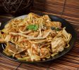 54. Pad Thai Rice Noodles stir-fried with dried bean curd, bean sprouts, egg, scallions and sweet turnip, topped with fresh toasted peanuts.