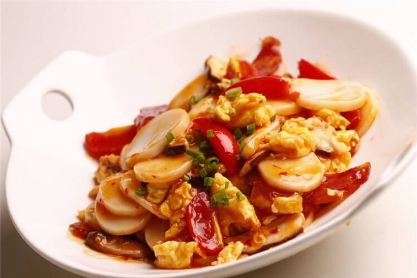 Braised Sea Cucumber with shrimp & vegetable carrot, eggs.  21.95