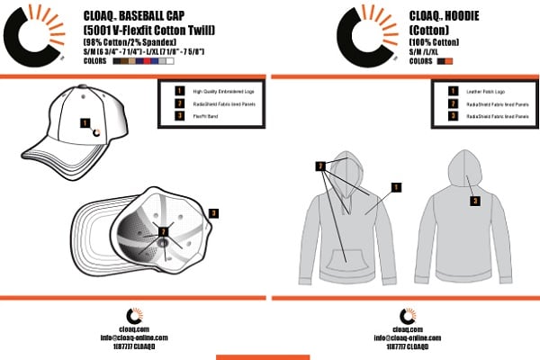 CLOAQ®服装与RadiaShield®技术团队合作,为CLOAQ提供RadiaShield®帽 ,这是他们产品系列中的第一个。 通过这次合作,CLOAQ®服装将提供与RadiaShieldTechnologies®(BellyArmor®的制造商)为孕妇及其未出生的婴儿提供的相同的保护技术。