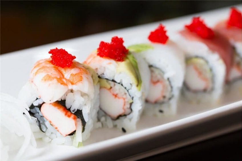 Sushi Lunch Special – Sushi Bar five pieces of sushi and one california roll. served with miso soup and salad.  8.50
