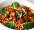 | Moo Goo Gai Pan served with choice of brown or white rice. | 12.95 | ||