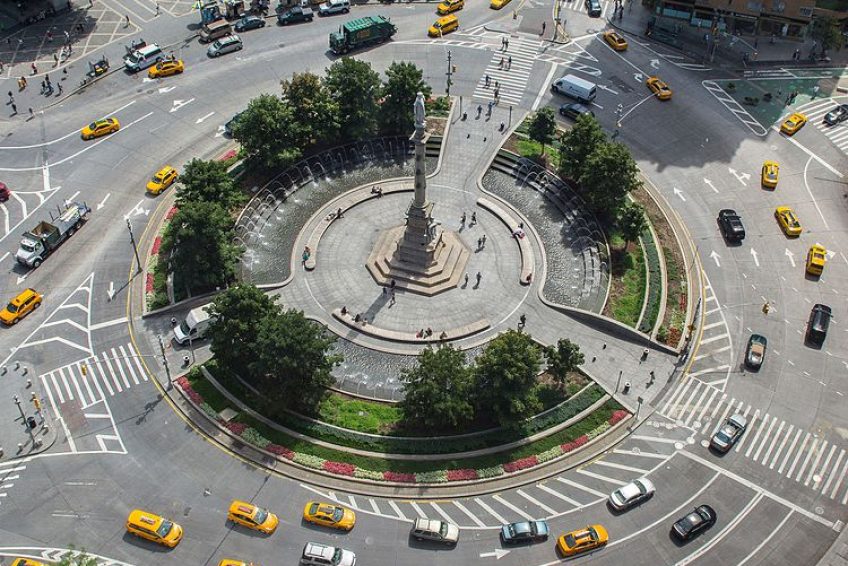 哥倫布圓環是一個小型綠地,位於中央公園西南角的多車道環形交叉路口中間。這裡有幾條道路:第59街,第八大道,百老彙和中央公園西區,這意味著總有很多事情要發生!