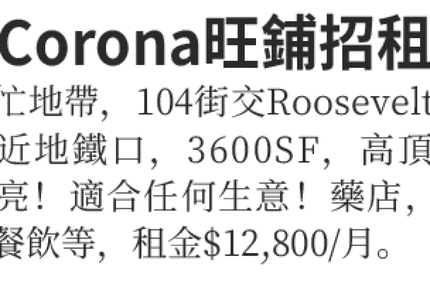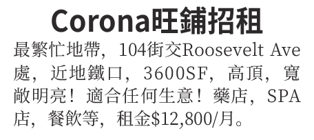 位於Corona旺鋪招租最繁忙地帶,104街與Roosevelt Ave交界處,