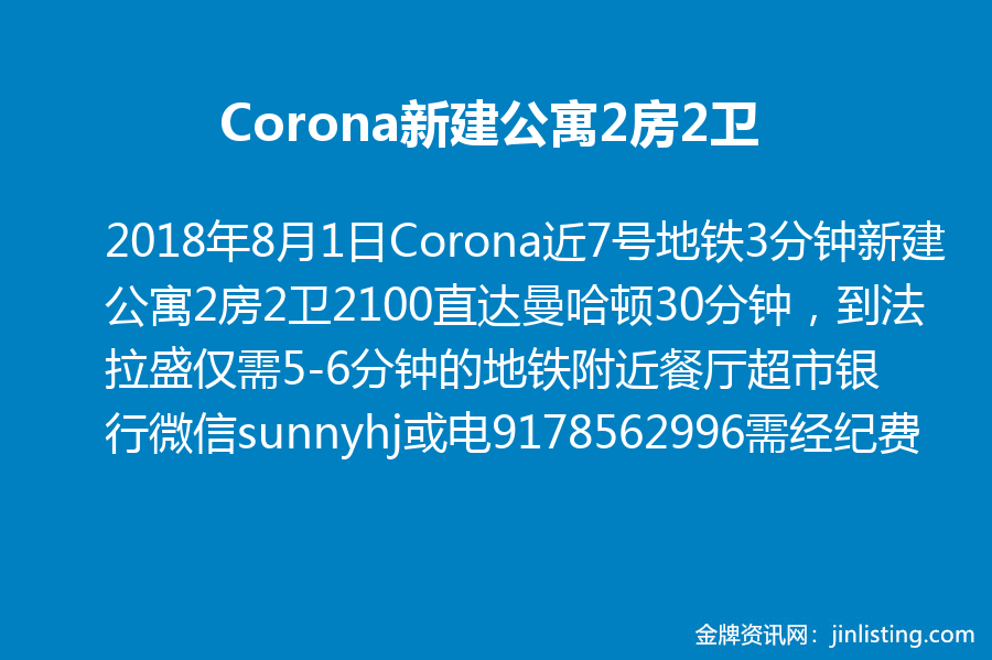 Corona近7号地铁3分钟新建公寓2房2卫2100