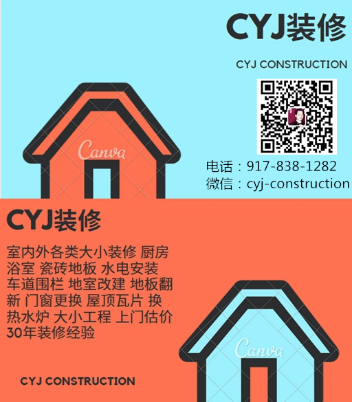 CYJ装修(917-838-1282):内外各类大小裝修 厨房浴室 瓷砖地板 水电安装 车道围栏 地室改建 地板翻新 门窗更换 屋顶瓦片 换 热水炉 大小工程 上門估價