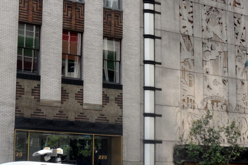 主入口特别体现了装饰艺术风格,入口处有华丽的浅浮雕,上面有办公室工作人员在旭日形象下的照片。