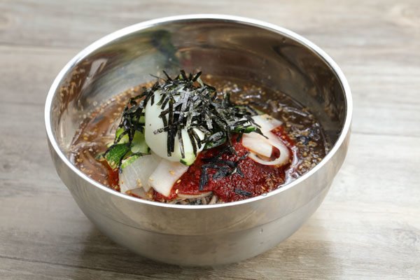 尽管很多韩餐听都提供冷面,价格也都不贵。可是Dakalbi餐厅的这份荞麦冷面,可是有些与众不同。Philip介绍说:“我们这份冷面,配料调和的很好,达到惊人、迷人的平衡。比如酸辣的口味,保证即不酸、也不辣。吃过鸡排之后,这份冷面就是最好的甜点。我们准备一份冷面的时间较长,需要15分钟,是因为要精细、精心、精致的平衡各种配料和调料。”