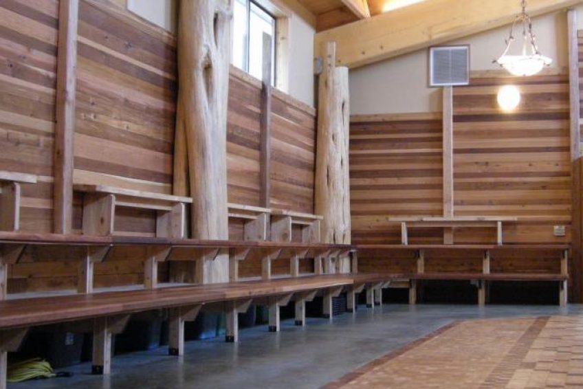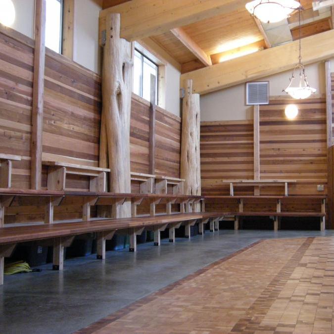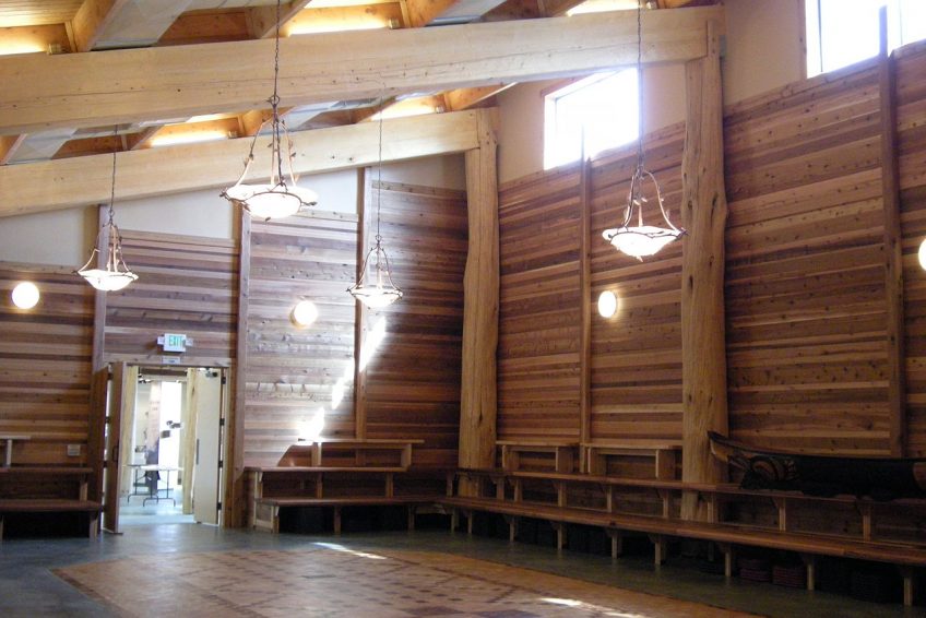 Duwamish Longhouse and Cultural Center是一个文化中心,传统的雪松柱和梁的设计是普吉萨利希长屋的风格