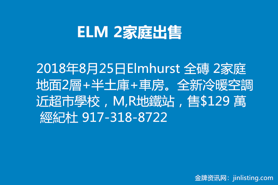 ELM 2家庭出售    917-318-8722