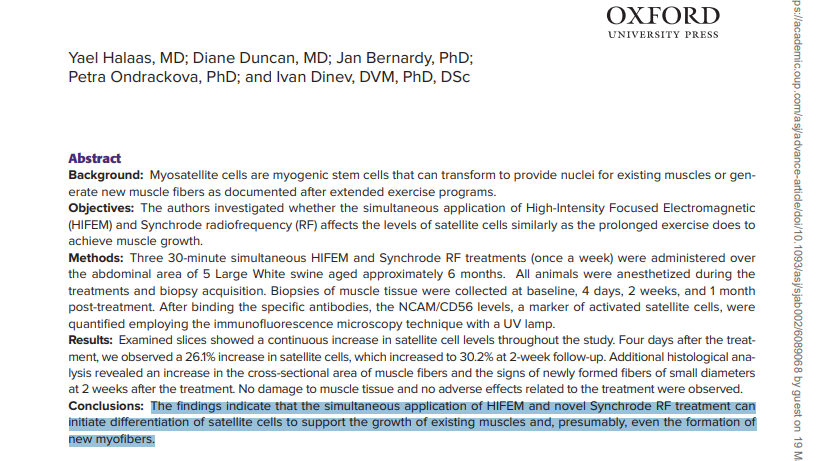 由牛津大学知名医师和博士共同完成的一项研究证明,EMSCULPT NEO 美修斯所采用的热射频和 HIFEM能够有效提升肌肉增长,甚至生成新的肌肉纤维。