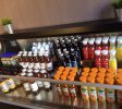 柜台旁简约的菜单,主要有三种大小的「Bowl」,主食「Base」有 Brown Rice/White Rice/纯蔬菜沙拉可选,并随尺寸不同而有配定数量的肉类及配菜,询问了一下店员得知点选大碗(L)的话,任一罐饮料可算半价哟!