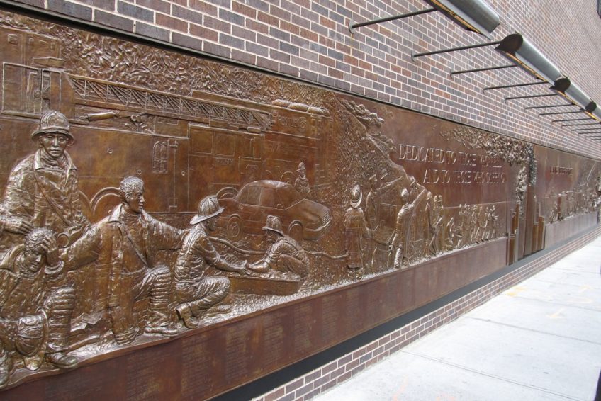 FDNY Memorial Wall是一个纪念死于在9 / 11恐怖袭击的战斗火灾救援的人的地方