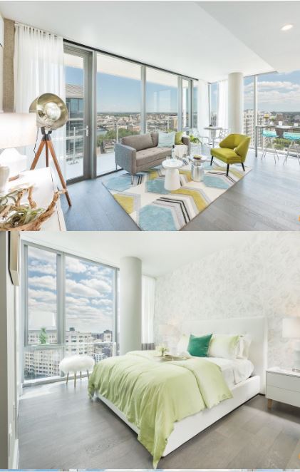 公寓内附超现代感精装修:落地窗全面玻璃设计,意大利定制精品橱柜,德国顶级厨房家电,一体化中央冷暖气,智能温度调节仪,每个公寓都享有风景绝佳,面朝曼哈顿的超大阳台。