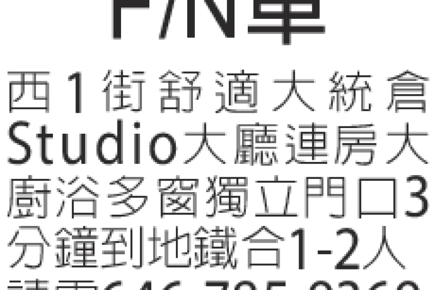 西1街舒適大統倉Studio大廳連房大廚浴多窗獨