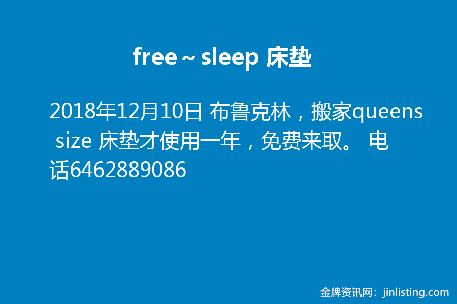 free~sleep 床垫 布鲁克林,搬家queens size 床垫才使用一年,免费来取。 电话6462889086