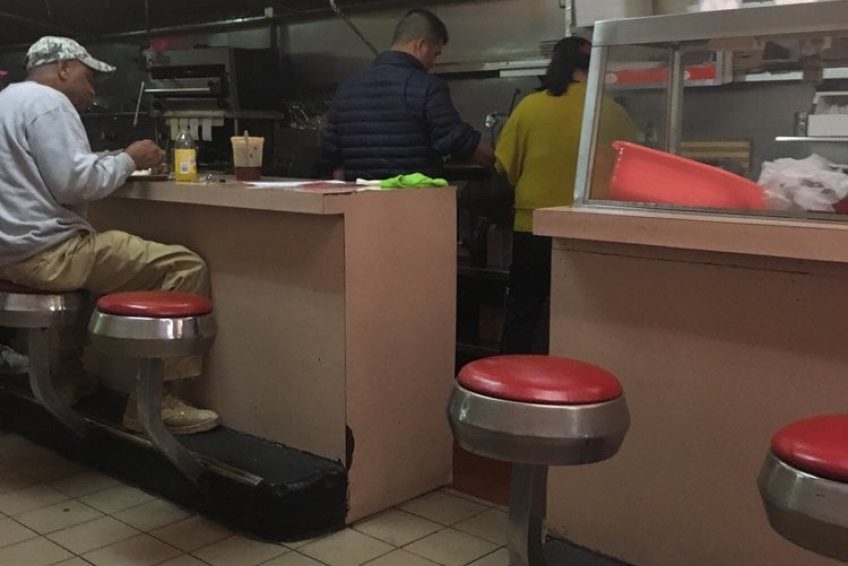 | Pork Chop Deluxe fried pork chop sandwich with lettuce, tomato french fries, cole slaw & pickle |
