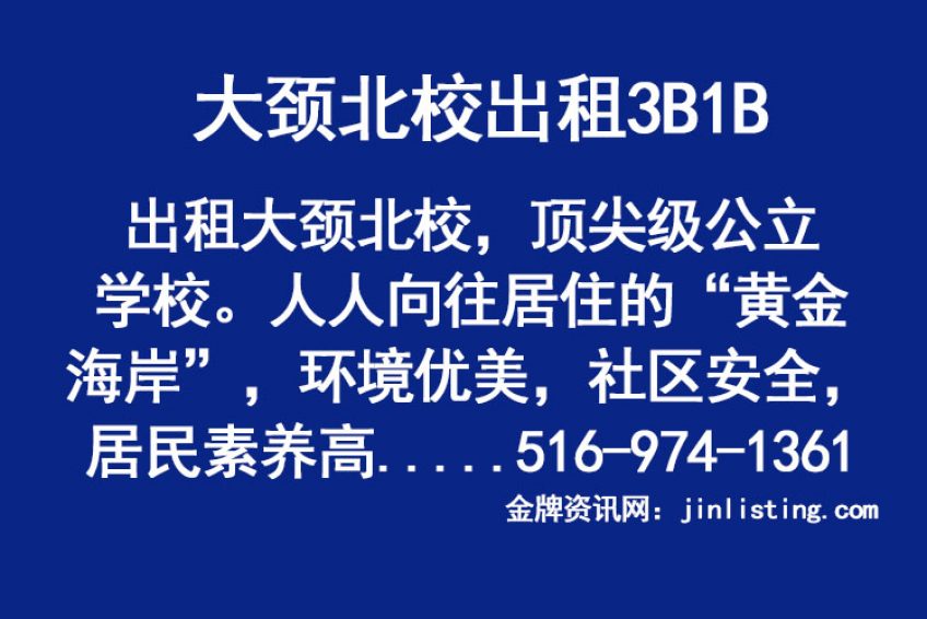 Great Neck大颈北校出租3B1B