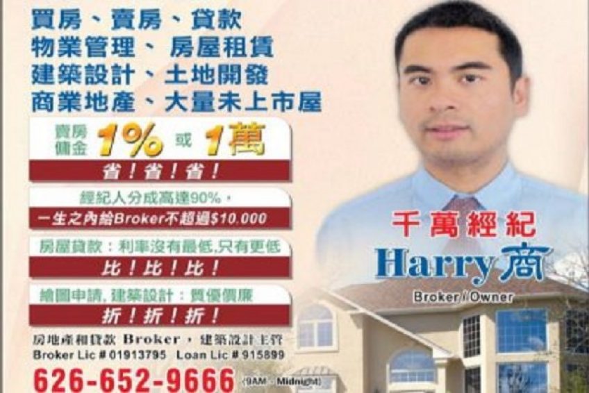 harry 商双硕士工商管理硕士和数量分析统计硕士。是洛杉矶有名的资深地产经纪,多年诚信为客人服务踏实认真负责人。为您提供最新的地产投资资讯,免费估价丶热心真诚。让您买了放心,卖了开心,赚得安心!在美国真正拥有美丽的家园,幸福的家庭,理想的事业,协助客户充分认识当地,并且感觉客户的需要,寻找最合适的地点与居家环境。