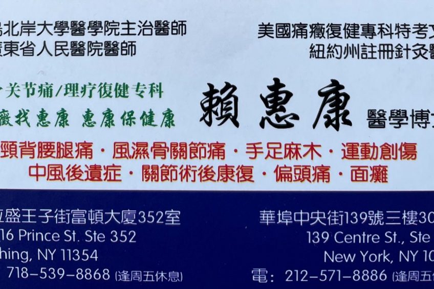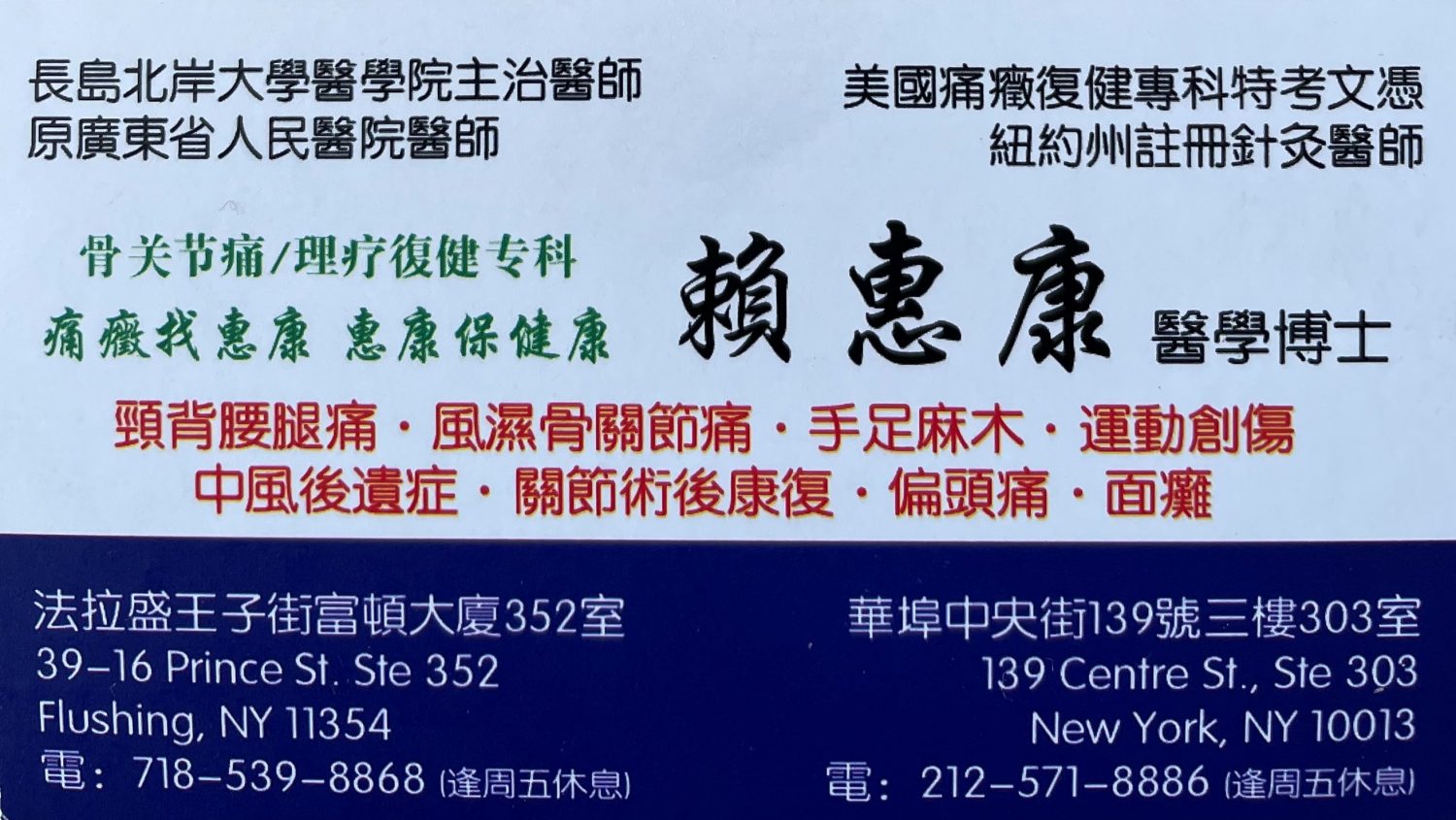 地址:139 Centre St. Ste 303 New York, NY 10013 (华埠中央街139号三楼303室)