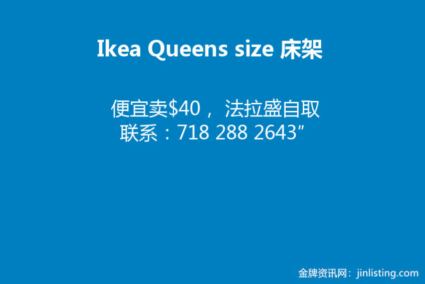 Ikea Queens size 床架, 便宜卖$40 “Ikea Queens size 床架(木床) , 便宜卖$40, 法拉盛自取 联系:718 288 2643”