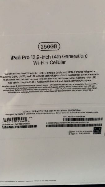 ipad pro 12.9 inch 256gb (4th Generation) 全新没有开封 只有二部 发拉盛交易 6313049999
