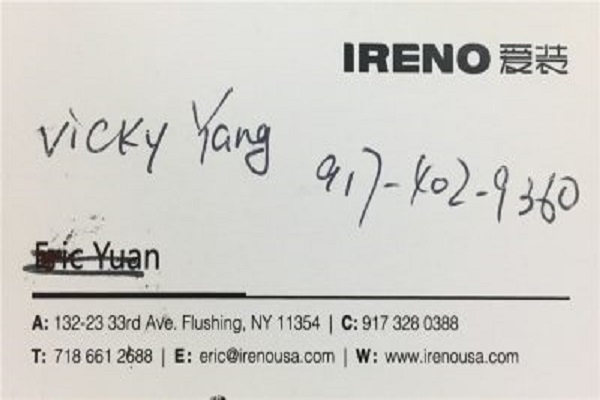 A: 132-23 33rd Ave. Flushing, NY 11354 电话: 917 328 0388 T: 718 661 288 I E: eric@irenousa.com 网址: www.irenousa.com
