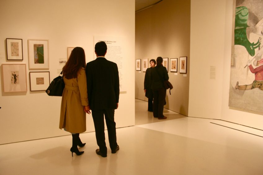 Jewish Museum 纽约犹太博物馆本身是一个比较新的馆,藏品多为现代油画。犹太人是一个经历了太多苦难的民族,在二次世界大战期间曾被纳粹残忍的迫害,而战争也使得许多犹太人流离失所。这个展厅的墙壁都是深深的紫蓝色,这个仿佛会说话的颜色透露出太多的哀怨、悲伤与不舍。沉重,是进入博物馆扑面而来的一种情绪。而当看过这些展品之后,除了忧郁和悲伤之外,更多的是人们对爱的寻找和对救赎的思考。参观后的这些感悟或许正是建立这个博物馆最大的意义。