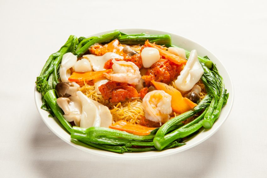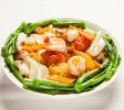 105. Dried Scallop And Egg served with dried baby shrimp and pine nuts.  18.95
