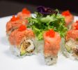 Tomo Roll spicy crunchy salmon inside, outside with salmon, white tuna, avocado, crispy rice ball and chef`s special sauce.  15.00
