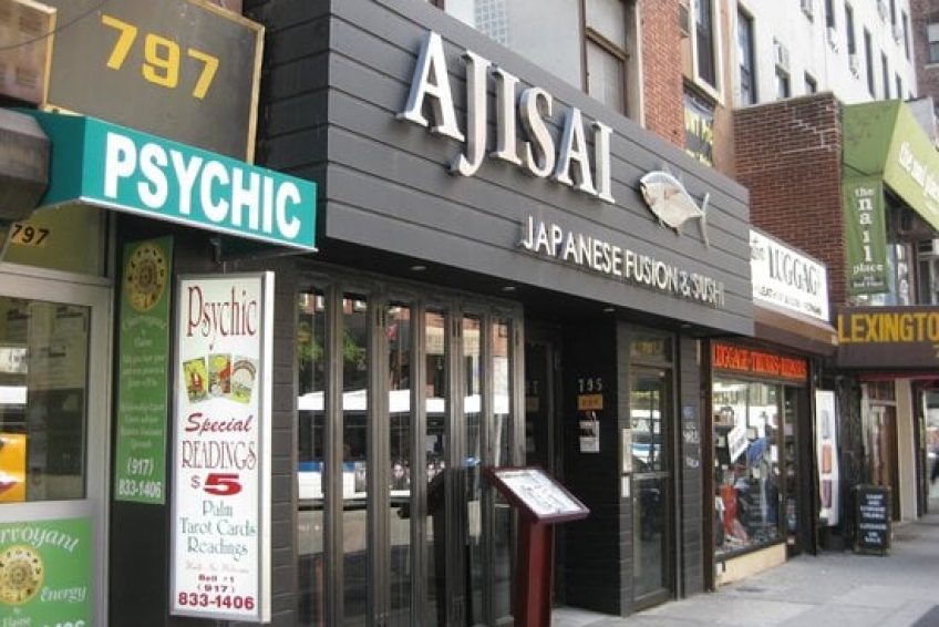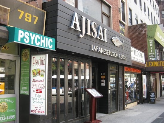 Ajisai Roll spicy crunchy salmon, mango, topped with blackened tuna, sweet shrimp, eel, avocado & tobiko, with mango sauce.  15.00