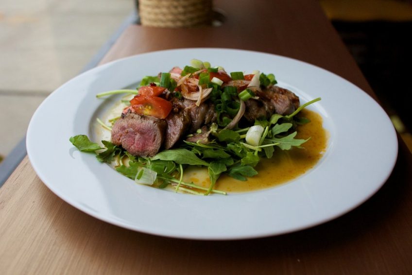 | Steak Jim Jaew (Medium Rare) grilled marinated butcher’s steak with jaew. spicy northern thai chili-lime dipping sauce. asparagus, brussels sprouts, sugar snap peas, baked sweet potatoes with sticky rice | 20.00 | ||