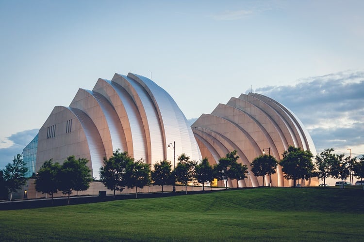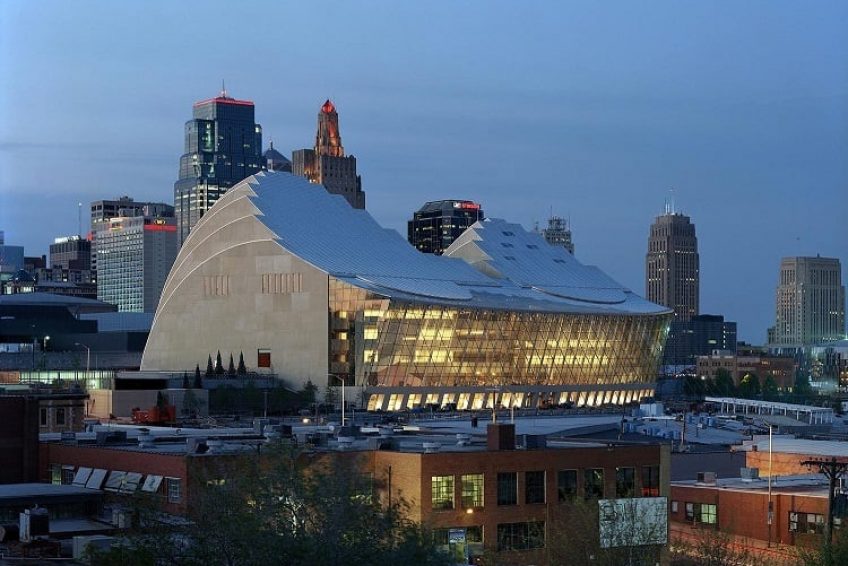 考夫曼表演艺术中心 — 一个集音乐、歌剧、戏剧、舞蹈与一身的艺术中心,将于2011年9月16日与密苏里州的堪萨斯城市中心正式开业。届时,这里将展示世界各地的文艺及表演节目,包括古典音乐、流行音乐、爵士音乐、芭蕾舞、现代舞、百脑汇剧目、喜剧及其它节目。 该艺术中心由以色列Moshe Safdie建筑公司设计,它占地285,000平方英尺(约合26 ,477平方米),包括两个独立的建筑,分别是1,800个座位的缪丽尔· 考夫曼剧院(Muriel Kauffman Theatre)和1,600个座位的海兹伯格大厅(Helzberg Hall),两座建筑的外形都宛若一个站立的贝壳,每座都设有玻璃屋顶和玻璃墙,使人们可以从这里将堪萨斯城的景色一览无余。艺术中心占地5英亩,它还包括一个113,000平方英尺(约合10,498平方米)的表演艺术中心露台,这里可以进行户外表演,也可以作为一个公共场所
