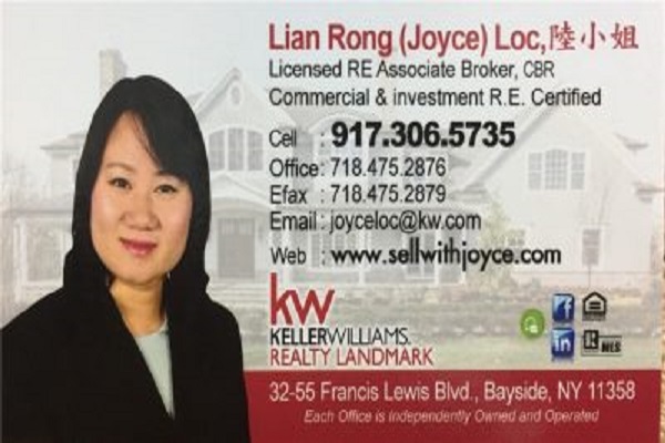 Lian Rong (Joyce) Loc,14. di, Aft Licensed RE Associate Broker, CBR Commercial & investment R.E. Certified Cell :917.306.5735 Office: 718.475.2876 Efax :718.475.2879