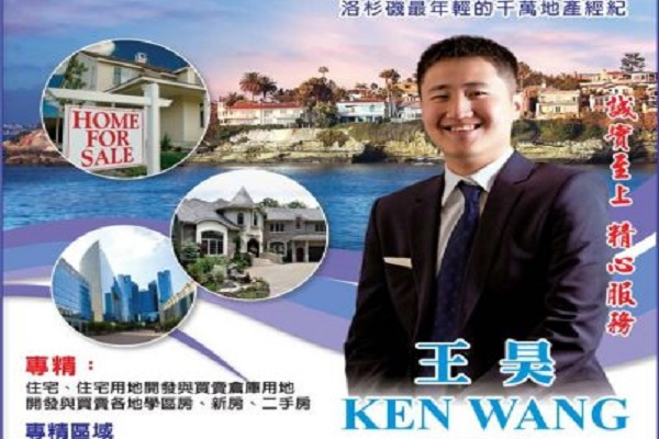 Ken Wang 王昊——现任职大都会地产集团 洛杉矶最年轻的千万房地产经纪人,加州房地产协会会员,美国加州房地产持执经纪人.