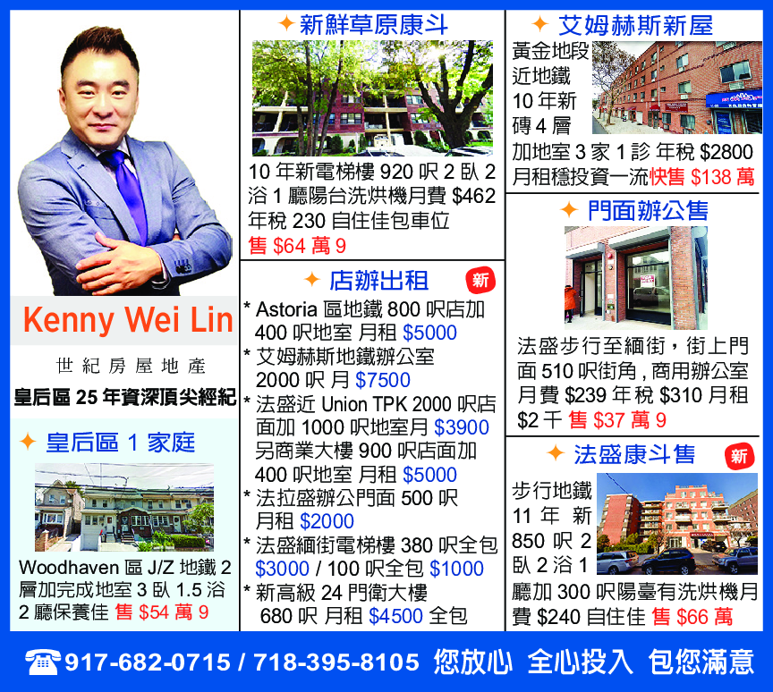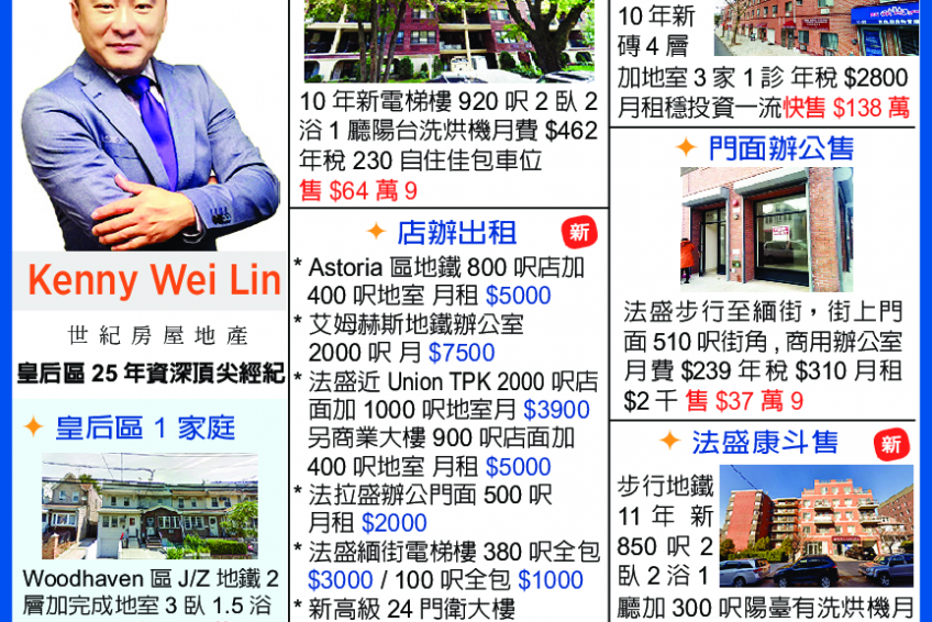 第五條廣告改為“法拉盛緬街電梯樓380尺月租$3000 全包,100尺月租$1000全包”