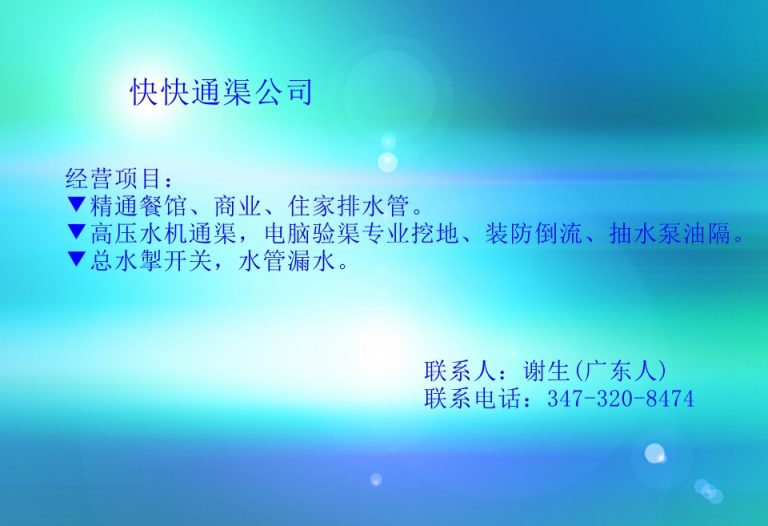 快快通渠公司 本公司由政府注册,24小时服务,是拥有正规执照的专业通水公司。 经营项目: ▼精通餐馆、商业、 … 继续阅读快快通渠公司