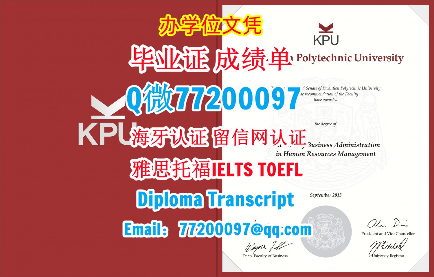 KPU文凭证书办理昆特兰理工大学文凭成绩单Q/微:77200097有KPU学位证书精仿KPU毕业证书能办KPU成绩单制作昆特兰理工大学文凭证书offer雅思托福Kwantlen Polytechnic University Diploma Degree Transcript