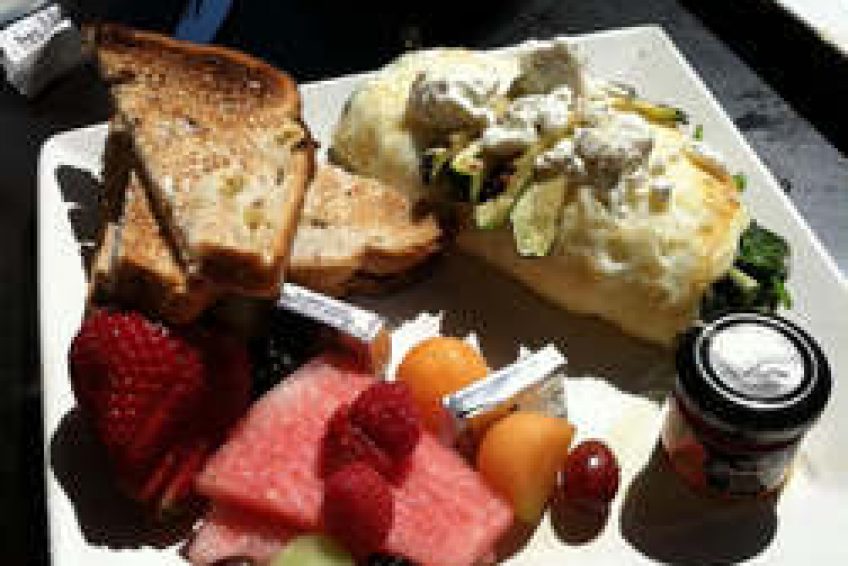 位於好萊塢的Larchmont是一條頗有藝術和優雅氣息的街道,這裡有不少有意思的小店,也有著名的早餐店Larchmont Bungalow,無論是現煮的咖啡還是新鮮出爐的各種蛋糕,都能給你帶來充滿活力的一天。 Larchmont Bungalow是典型美式早餐店風格,每天上午顧客都擠得滿滿,大家先排隊點餐再坐下,露天座位有火爐讓人在清涼的早晨也不覺得冷,點餐檯前的甜點櫃檯裡放著剛出爐的新鮮甜點,馬卡龍丶芝士蛋糕丶巧克力黑森林等,還有這裡招牌紅絲絨和藍絲絨蛋糕,漂亮又美味。這裡的現煮咖啡(House Brew)很香濃,早餐前來一杯,讓人活力充沛,其中手工法式咖啡加入了黃油焦糖,意式濃縮咖啡有澹澹煙熏味,哥倫比亞咖啡味道濃重還有澹澹酒香,還有回味水果香的哥斯達黎加咖啡。這裡的班尼迪克蛋是點擊率最高的餐點,不同於其他早餐店用英式馬芬蛋糕做底,這裡的班尼迪克蛋使用吐司做底,鋪上厚厚的新鮮菠菜,上面可選煙熏三文魚丶火腿或煎蟹肉,再鋪上一顆半熟雞蛋,淋上荷蘭醬,味道層次豐富,配菜可選新鮮水果或煎土豆。各式歐姆雷蛋餅和三明治也做工一流,可根據自己口味選擇海鮮丶火腿丶培根肉丶或全素的內餡,配菜可選炸甜薯條,香脆的番薯條搭配自製酸甜醬,比普通薯條吃起來更香甜清爽,喜歡