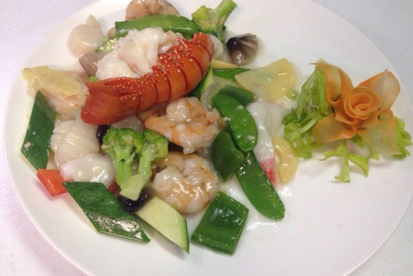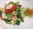 Steam fresh lobster tail, cucumber, avocado inside, smoked salmon on top