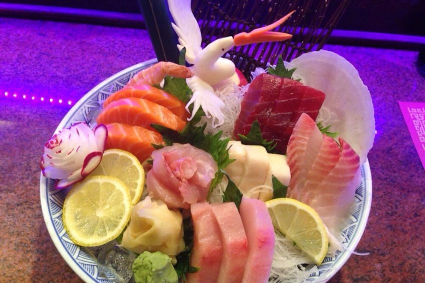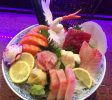 California roll topped w. an assortmend of sashimi