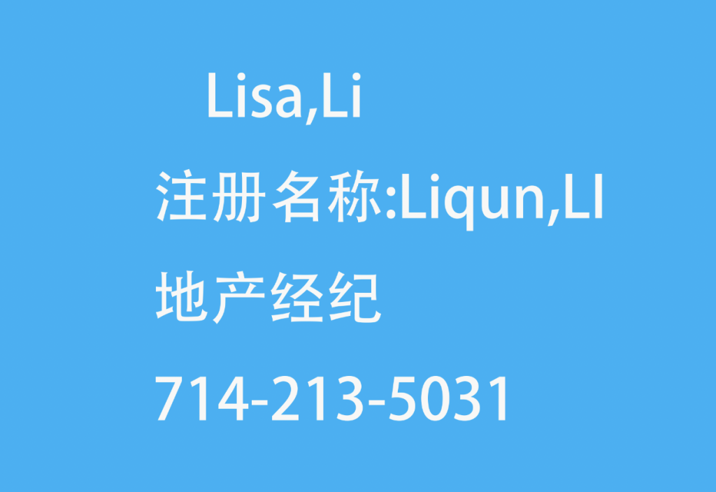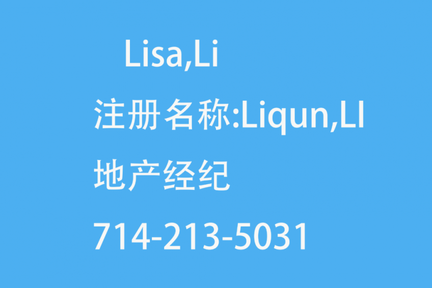 Lisa,Li 注册名称:Liqun,LI 地产经纪 714-213-5031