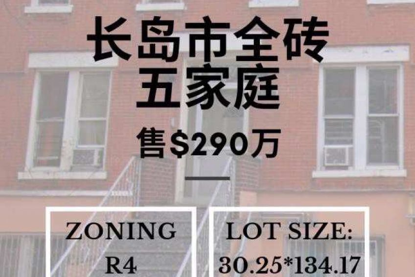 Long Island city, 5 家庭, 一楼可以成为商店, 现在收租可达18万2400 一年, 地税只要1万Zoning R4, 地长134.17, 地点优势, 有钥匙随时看。 可以清空, 可以不清空! 要价290万。 欢迎合作转发。 详情请联系Nancy 718-913-7083