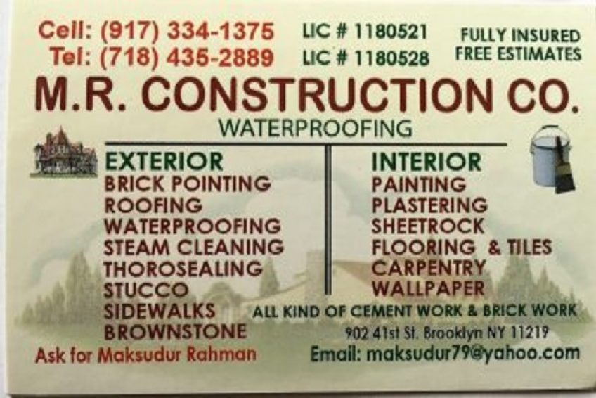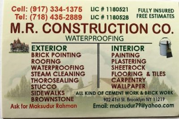 M.R. CONSTRUCTION CO.-Cell: (917) 334-1375