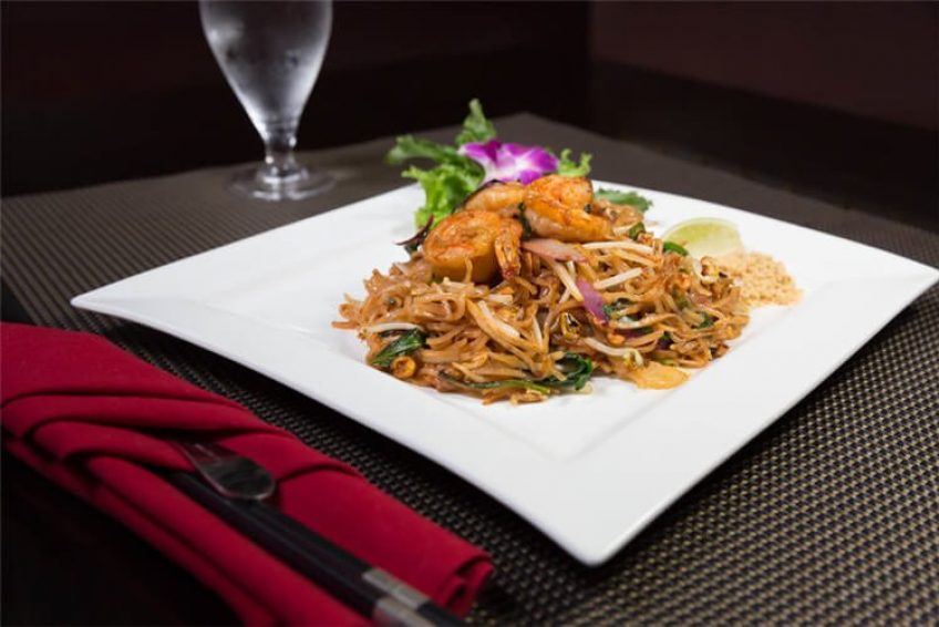 | D. Pan-Fried Shrimp Noodles served with soup or salad. | 13.00 |