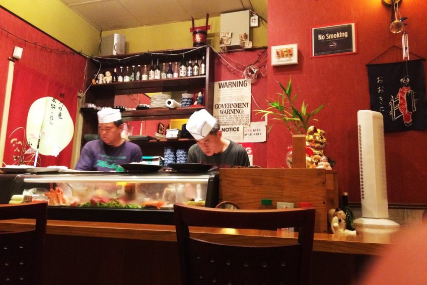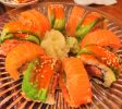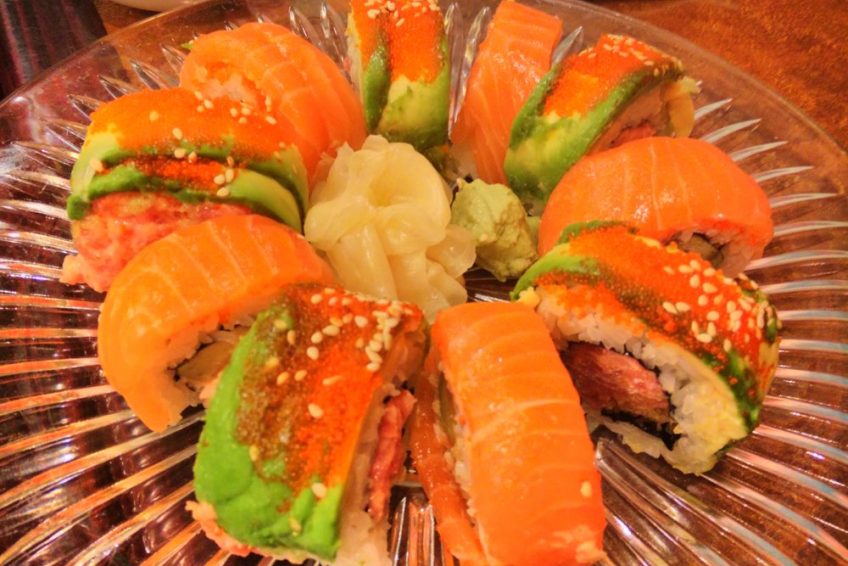 | Christmas Roll inside eel, yellow tail, outside avocado, wasabi caviar |