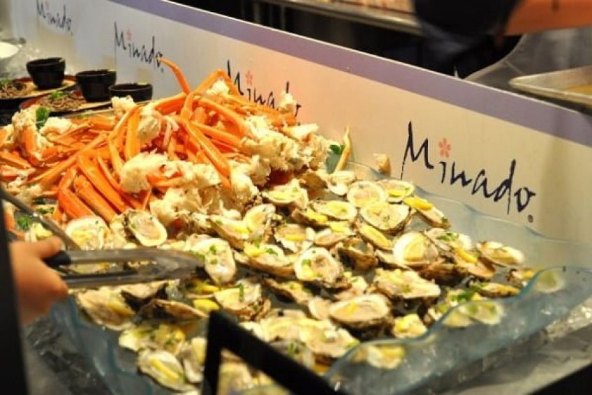 除了提供招牌寿司和生鱼片,“Minado”还有传统和现代结合的日本热食菜肴,包括炒面、炒饭、红烧鳕鱼、三文鱼、鱿鱼卷、炒鲜贝、清蒸蛤蜊、红烧牛腩、虾卷、鸡翅、鱼饼、天妇罗、饺子和乌冬面等。晚餐时间,韩式风格的铁板烧烤站开放,烤虾、烤肉、烤鸡翅、烤猪肚香气扑鼻,让人欲罢不能。如此多的美味,您一定要精心选择,因为还有阿拉斯加雪蟹腿、大虾、生蚝在等著您。您还要再为“Minado”自制的近20种美味甜点留些胃口。
